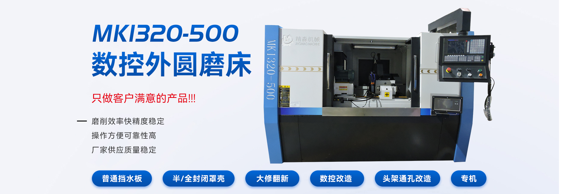 精淼機械主要生產普通外圓磨床、數控外圓磨床等